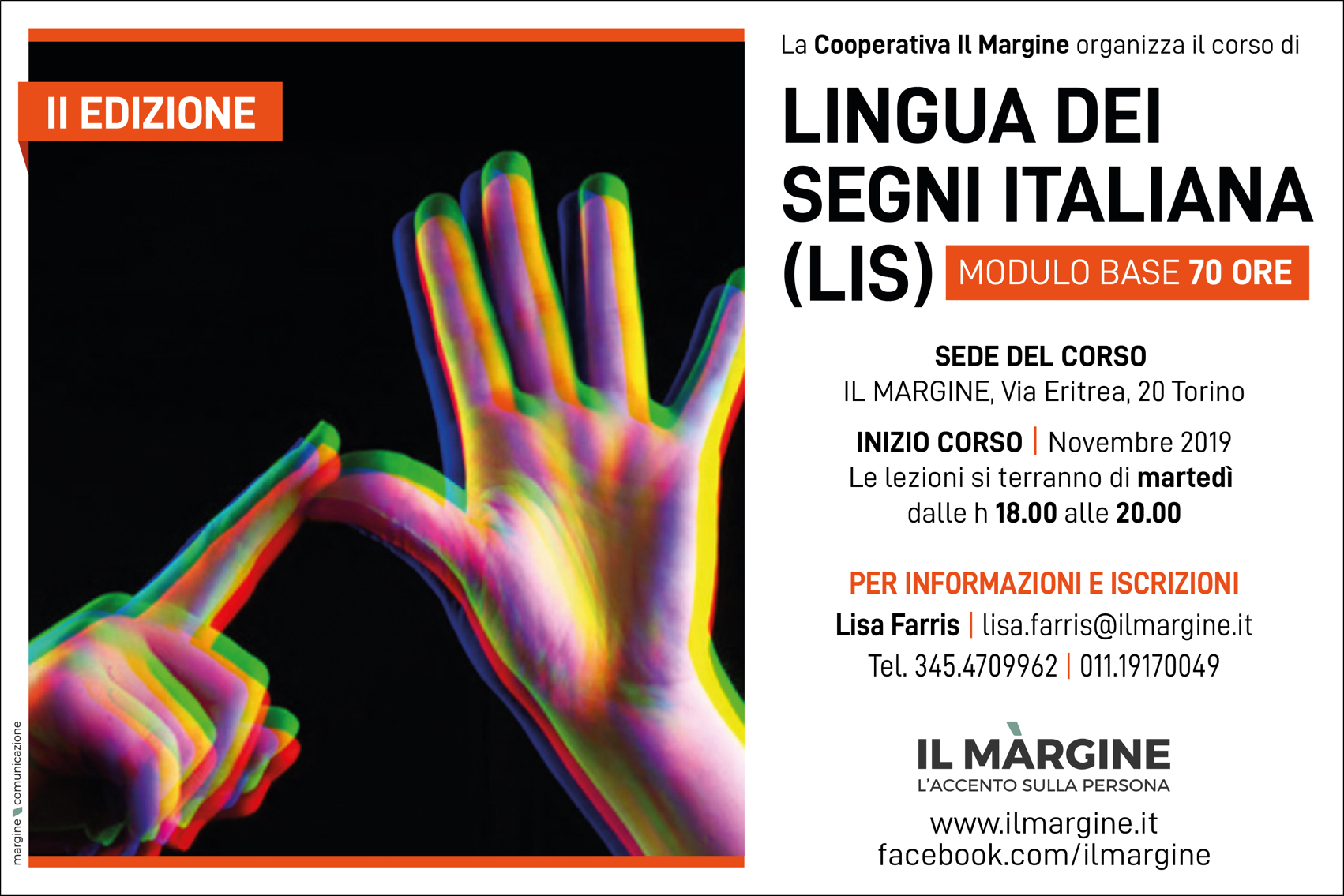 La cooperativa Il Margine è lieta di informare che a partire dal mese di novembre partirà la II edizione del Corso di formazione in Lingua Dei Segni Italiana (LIS), Modulo Base.