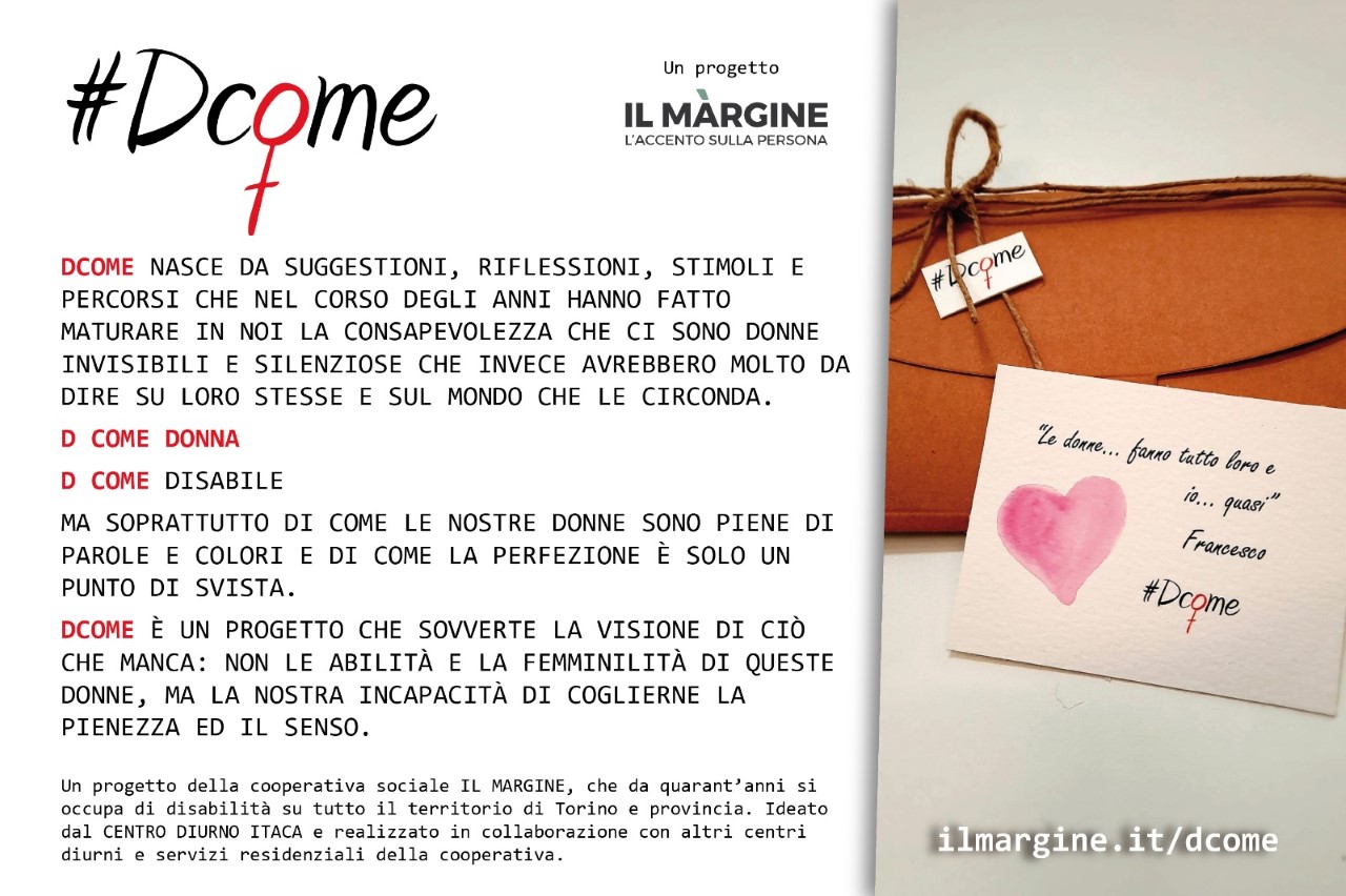 • Un viaggio lungo un anno dove le donne seguite nei diversi servizi della cooperativa diventano ancora più protagoniste della loro storia, dando voce e forma alla ricchezza che si portano dentro. Laboratori, workshop, reading, produzioni artigianali: un modo per mettere l’accento sulle abilità e sulla femminilità di queste donne, superando quella distanza che spesso ci impedisce di cogliere la pienezza di percorsi di vita faticosi.