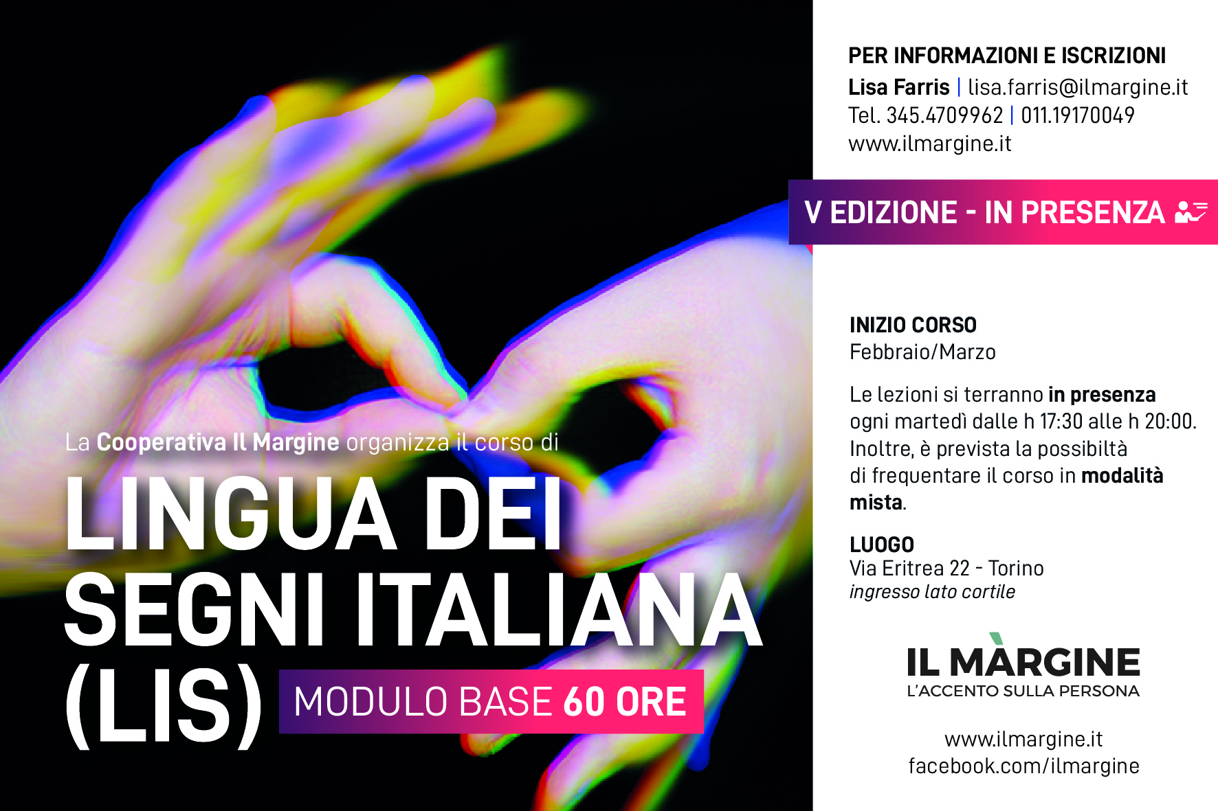 Una proposta per apprendere una lingua che permette di avere conoscenze applicabili in ambito professionale/personale (favorendo il supporto all’autonomia di minori e adulti con queste necessità), di conoscere una nuova realtà culturale, di essere facilitatore e promotore di una cultura inclusiva. La cooperativa Il Margine è lieta di informare che a partire dal mese di gennaio partirà la V edizione online del Corso di formazione in Lingua Dei Segni Italiana (LIS), Modulo Base.